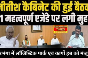 Read More »नीतीश कैबिनेट की बैठक में 41 एजेंडों पर मुहर, दरभंगा में लॉजिस्टिक पार्क एवं कार्गो हब को मंजूरी